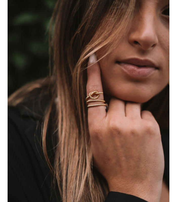 Este anel em prata dourada é uma peça deslumbrante e sofisticada, ideal para quem procura um acessório de destaque. Com design inspirado em flores-de-lis vazadas, o anel conta com delicadas zircónias cravadas que oferecem um toque de brilho e charme. O acabamento dourado confere um ar clássico, enquanto os detalhes vazados e o brilho das zircónias trazem modernidade e sofisticação.