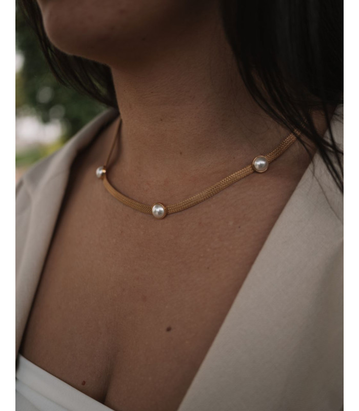 Este colar em prata dourada combina a sofisticação das pérolas com a elegância de um design moderno e delicado. Uma peça versátil e intemporal, perfeita para complementar qualquer look com um toque de luxo discreto.