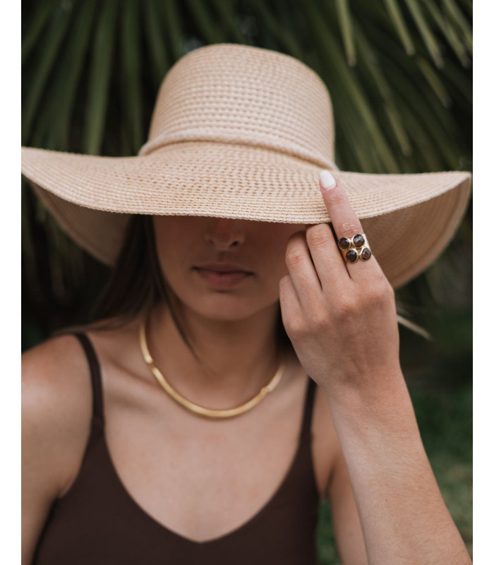 Colar moderno em prata com um elegante toque de ouro e uma pedra de fluorite retangular. A peça apresenta um design minimalista, com uma corrente de prata robusta, destacando um pingente que combina um disco texturizado em ouro e uma fluorite translúcida. Ideal para quem procura uma peça única e sofisticada.
