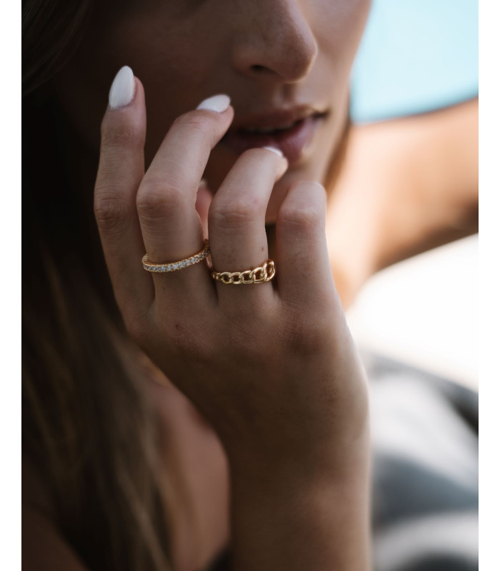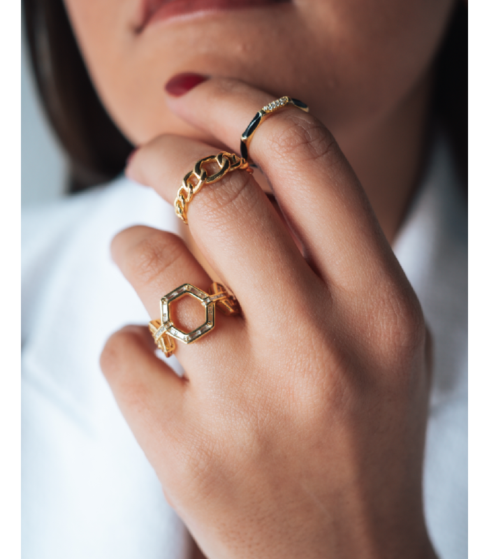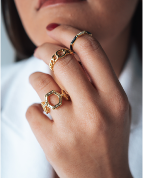 Este Anel de Prata Dourada é uma verdadeira obra-prima que combina a beleza clássica da prata dourada com o brilho deslumbrante das zircónias.