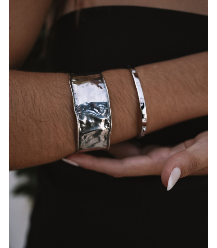 Pulseira em prata com chapa em ouro, com diversas chapas delicadamente interligadas. Esta pulseira, oferece a versatilidade de ser usada como uma peça única ou em separado. Conjuntos que fazem a diferença e perfeitos para qualquer ocasião.