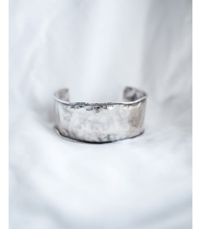 Esta pulseira de prata dourada apresenta um design refinado, com uma textura em espinha e um detalhe central em forma de nó, combinando sofisticação e estilo clássico.