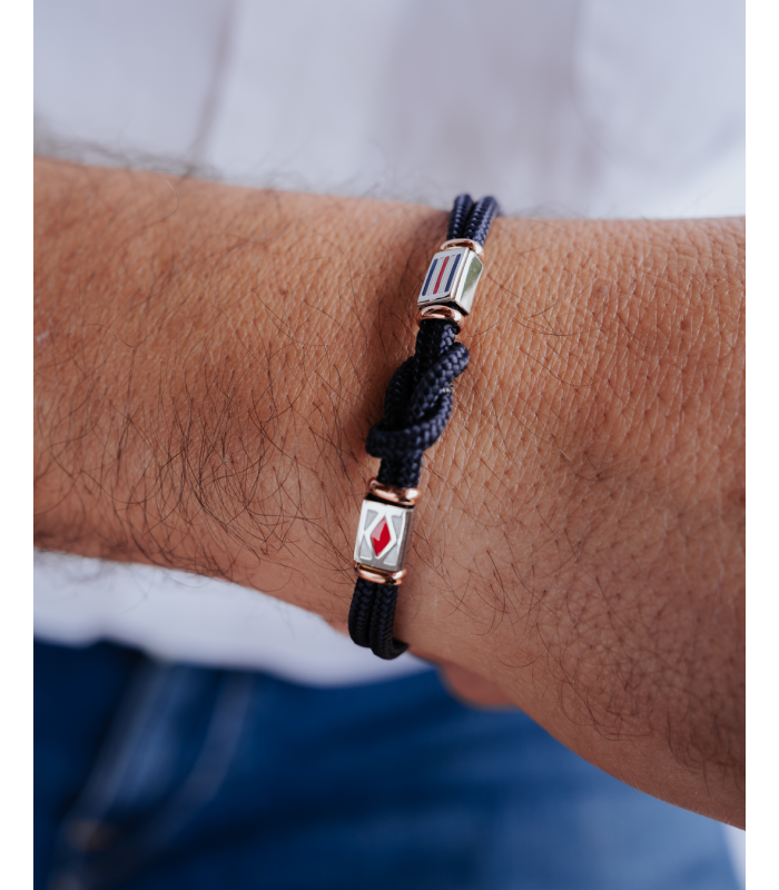 Pulseira de estilo robusto com expressão de força e elegância. Navegando pelas ondas da vida com a força do aço e a essência da corda náutica azul.