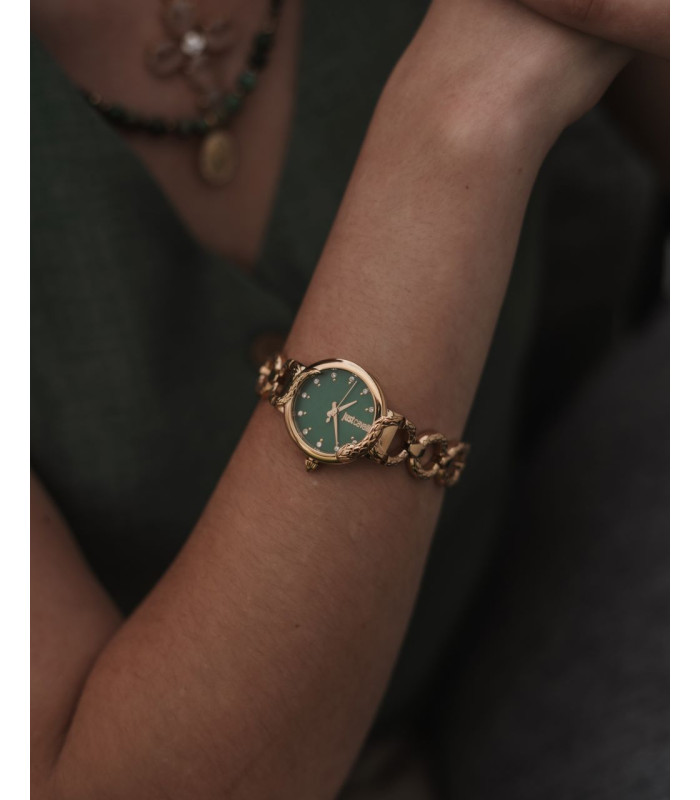Atemporal, sofisticado e elegante. Este relógio é a expressão perfeita do estilo moderno e refinado. Com pulseira dourada, caixa redonda e um marcante mostrador verde, ele combina design de alto padrão com funcionalidade. É ideal para quem busca beleza e praticidade em todas as ocasiões.